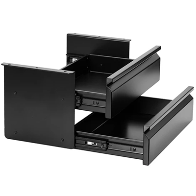 Bamboo Desk File Organizer, Office Calculator , and Mounted Sliding Pull-Out Drawer may assist in better organization and time management.